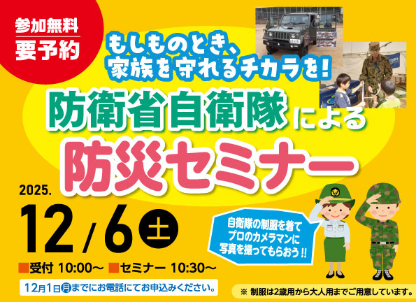 [【参加無料/要予約】自衛隊による防災セミナーを12月6日に開催]