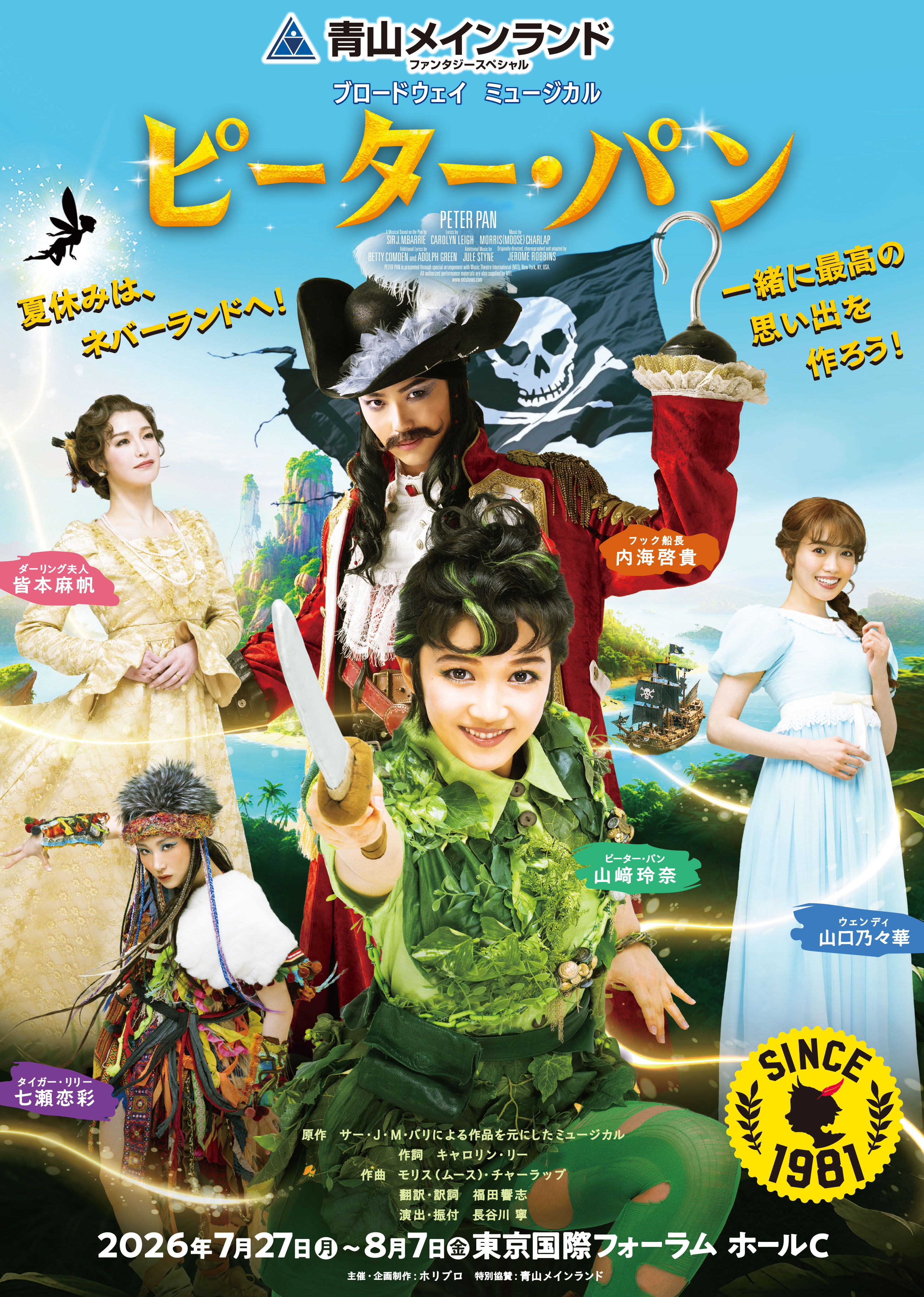青山メインランドファンタジースペシャル ブロードウェイミュージカル『ピーター・パン』2026年7月上演決定【出演:山崎玲奈、内海啓貴、山口乃々華、七瀬恋彩、皆本麻帆 ほか】