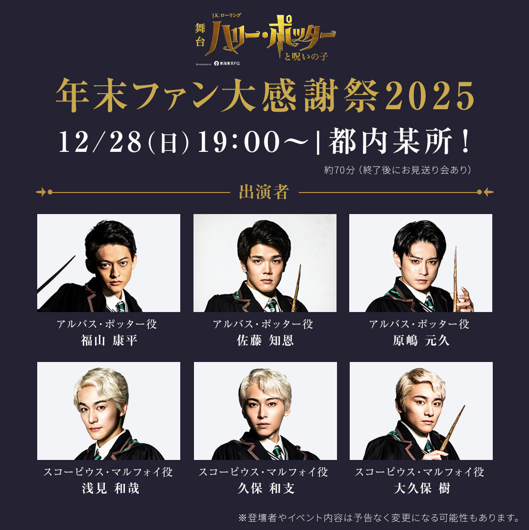 ロングラン4年目!舞台『ハリー・ポッターと呪いの子』年末ファン大感謝祭2025 開催決定!【出演者:福山康平/佐藤知恩/原嶋元久、浅見和哉/久保和支/大久保樹】
