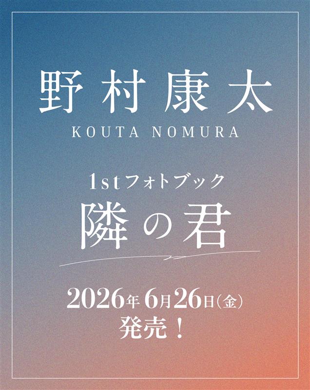 野村康太 1stフォトブック『隣の君』、ホーム社より6月26日(金)発売 発売記念イベントも開催!