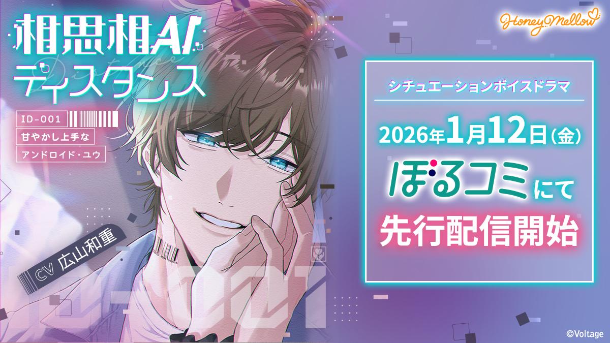 非日常のときめきを与えるシチュエーションボイスドラマ新シリーズ「相思相AIディスタンス ~ID-001 甘やかし上手なアンドロイド・ユウ~ 」(CV.広山和重)1月12日(月)よりぼるコミにて先行配信