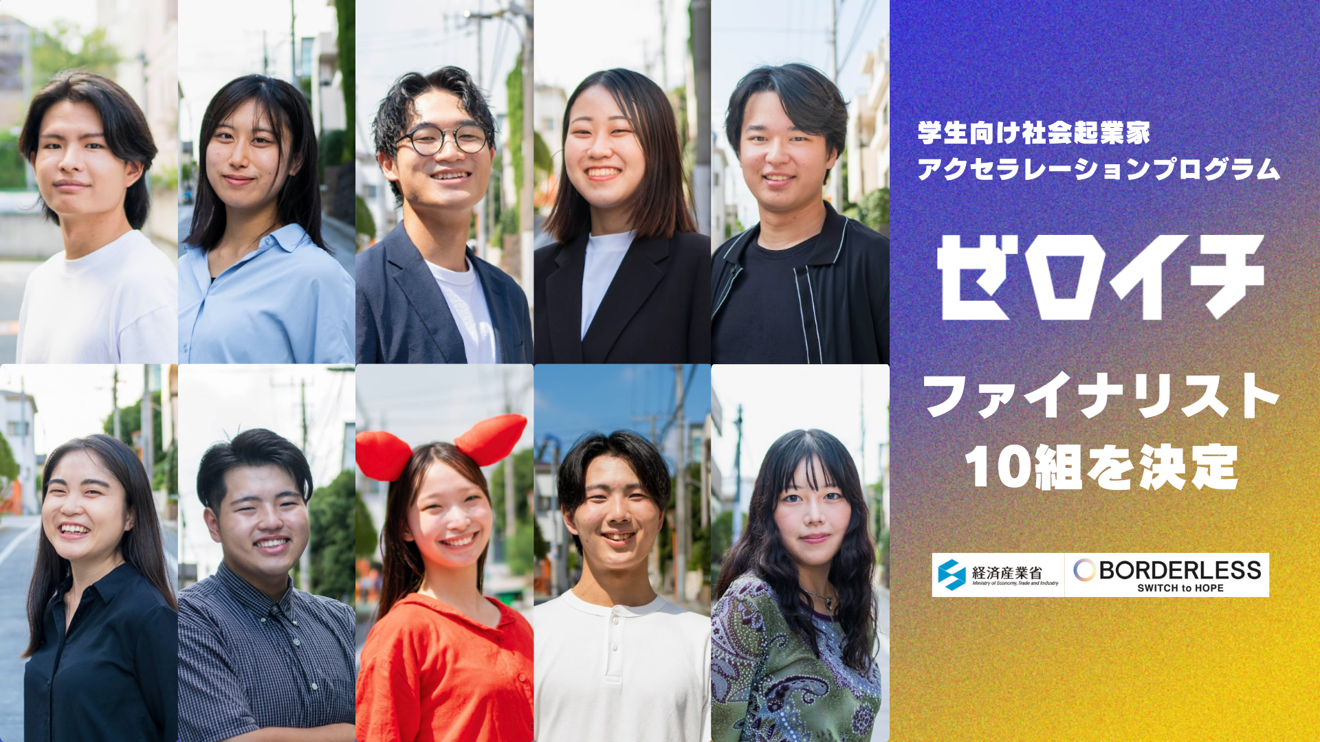 経済産業省×ボーダレス・ジャパン、学生社会起業家アクセラレーションプログラム「ゼロイチ」3期のファイナリスト10組を決定。