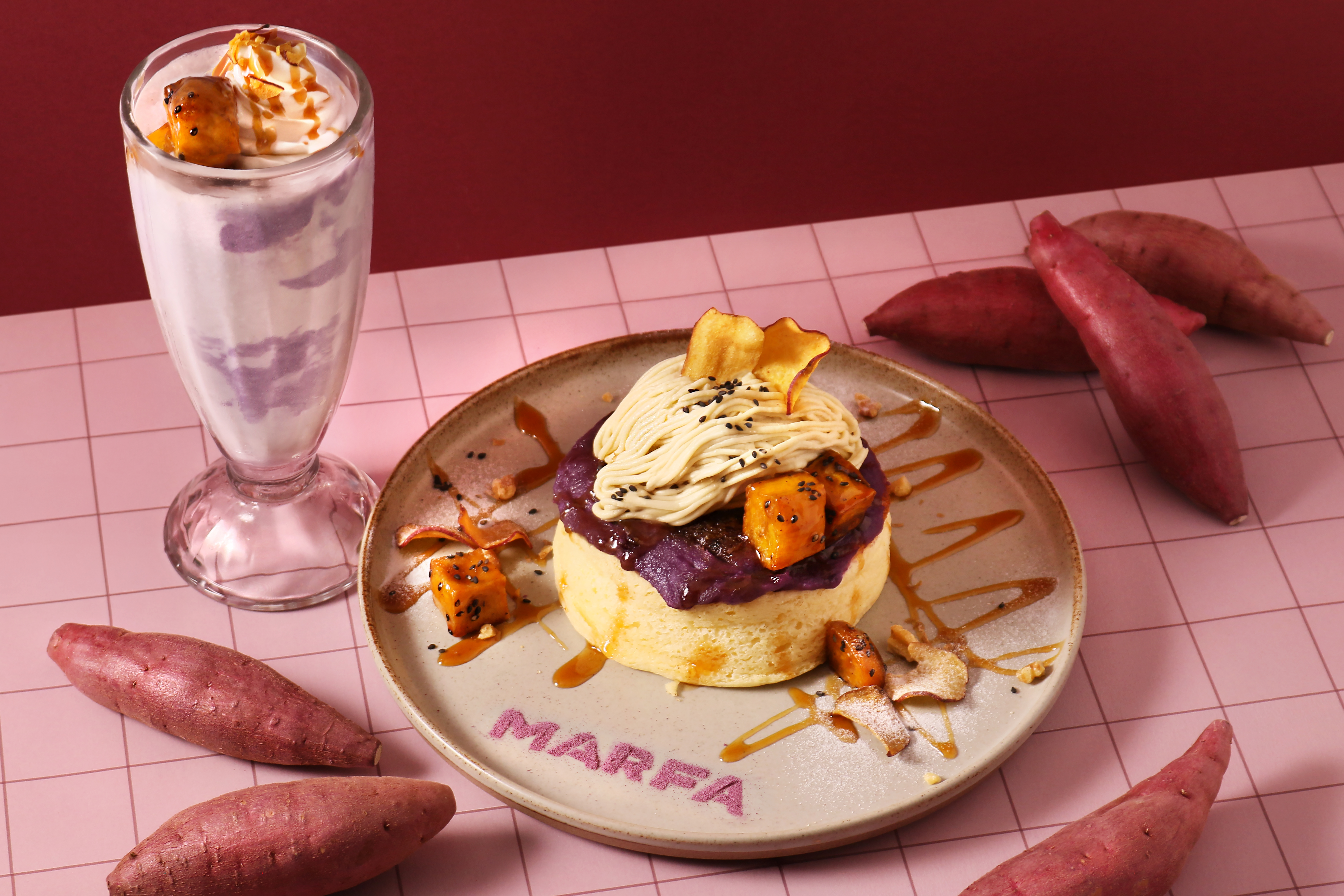 芋づくしの秋を味わう!「紅はるかと紫芋のブリュレパンケーキ」など、秋の限定メニューが横浜モアーズ3階 "MARFA CAFE"から、10/1(水)より新登場!