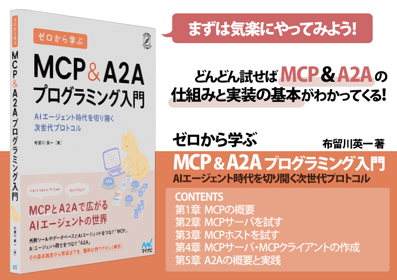 基本概念から実装までを分かりやすく解説!『ゼロから学ぶ MCP&A2Aプログラミング入門 AIエージェント時代を切り開く次世代プロトコル』、発売【Amazon MCP関連書籍ランキング1位を獲得!】