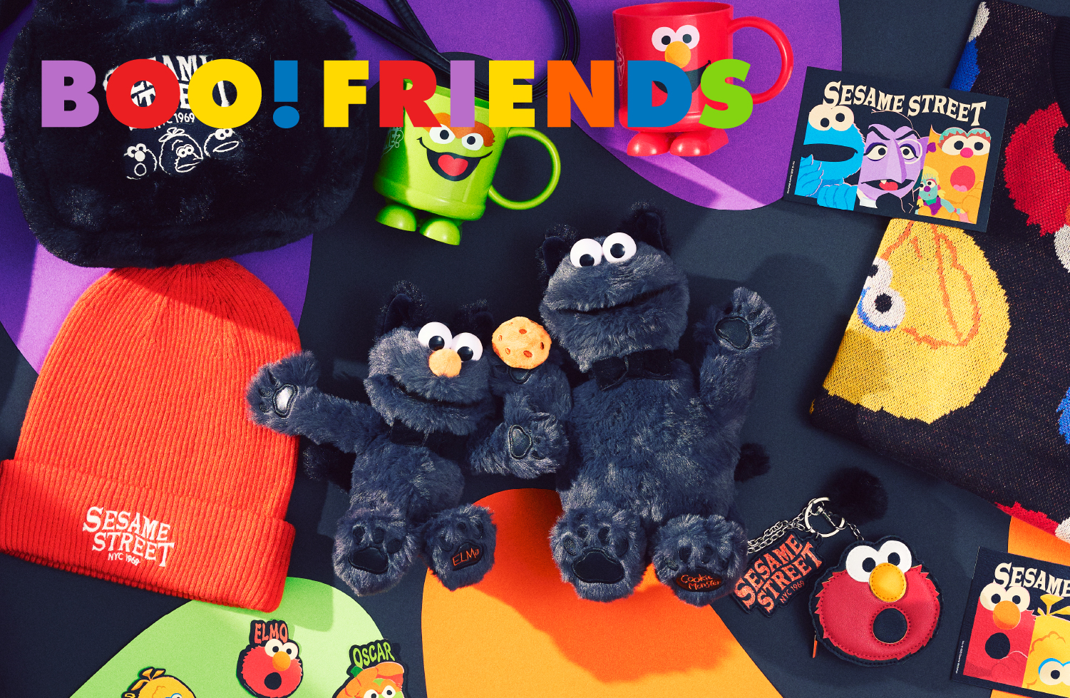 【セサミストリートマーケット】ハロウィンムードたっぷりの新コレクションは「BOO!FRIENDS」がテーマ!キャラクターたちが「Boo!」に驚く様子や黒猫に仮装した姿をモチーフに〈10月2日(木)〉