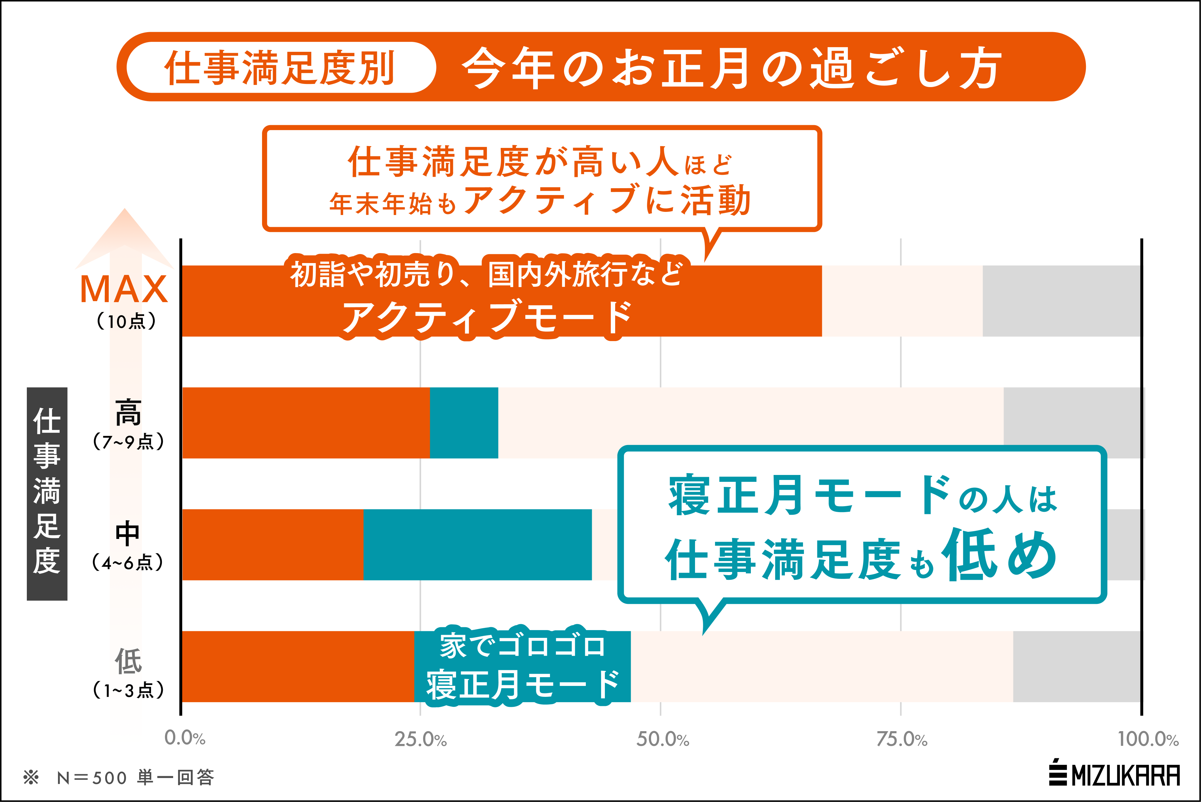 今年の年末年始、みんなのモードは?寝正月の人は仕事満足度も低く、出かける人は仕事にも前向きな傾向
