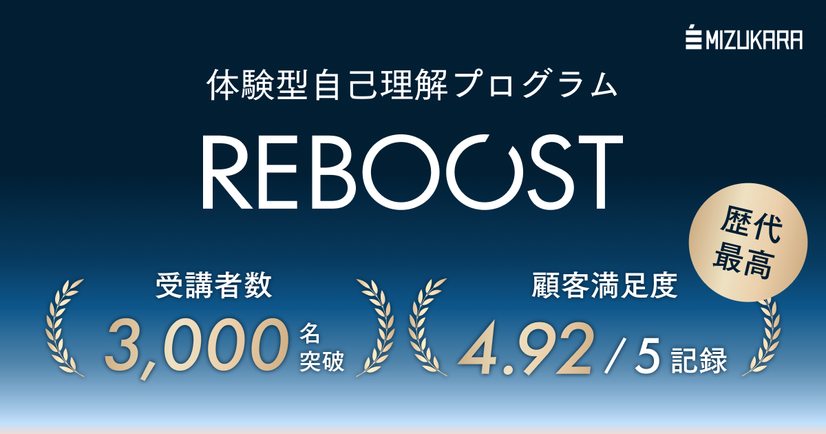 体験型自己理解プログラム「REBOOST」累計受講者数3,000名突破顧客満足度も歴代最高「4.92」を記録