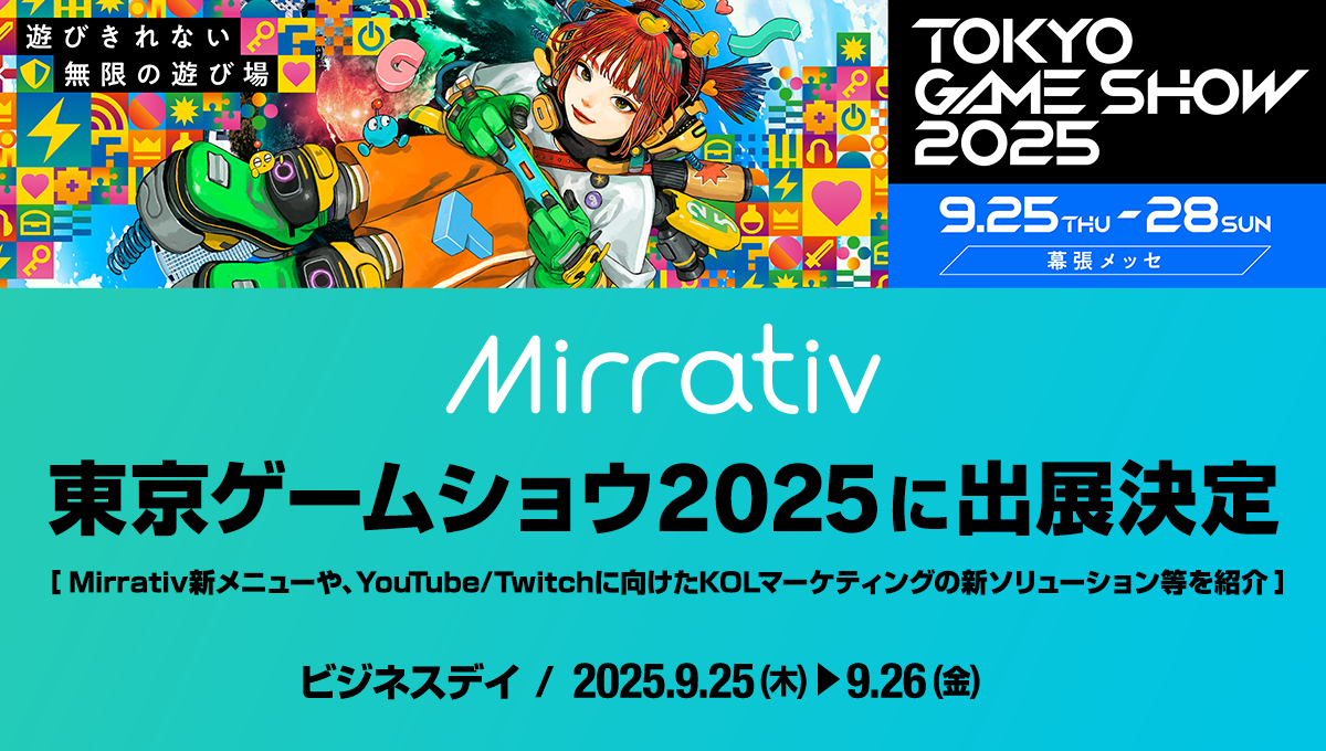 ミラティブ、『東京ゲームショウ 2025』に出展。新メニュー「プラットフォームジャック」や、YouTube/Twitch向けのVTuberと共に創るKOLマーケティングの新ソリューションをブースで紹介