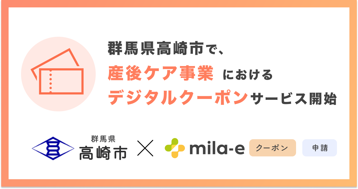 ミラボ、群馬県 高崎市で「mila-e クーポン」「mila-e 申請」の提供が決定! 産後ケア事業においてデジタルクーポンの運用を開始