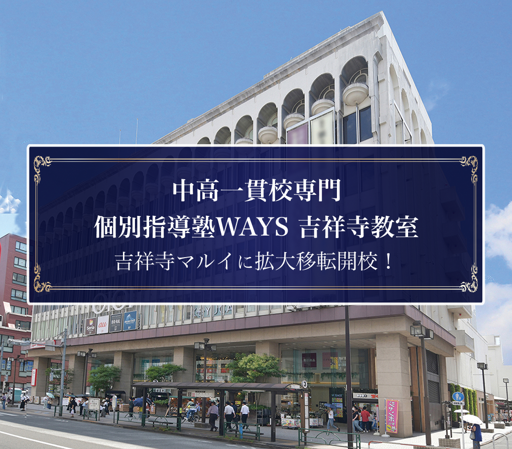 【「吉祥寺マルイ」内へ拡大移転決定】中高一貫校専門 個別指導塾WAYS吉祥寺教室[WAYS全国初の"塾生200名突破教室]が、2026年2月下旬に新たな学習拠点へ。