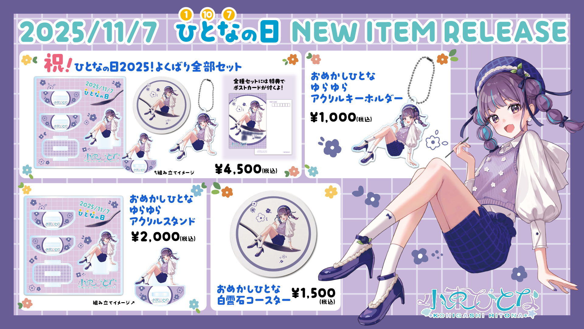 小東ひとなの日2025を記念した新作グッズが登場!アクリルスタンド、キーホルダー、白雲石コースターがセットになった「よくばり全部セット」を販売開始!(PR TIMES アニメ)