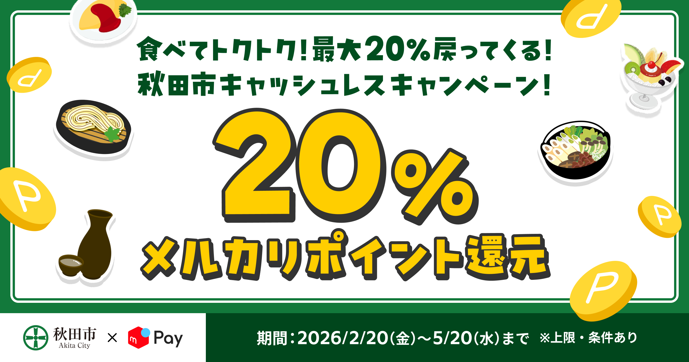 メルペイ、秋田市のキャッシュレスキャンペーンに参画