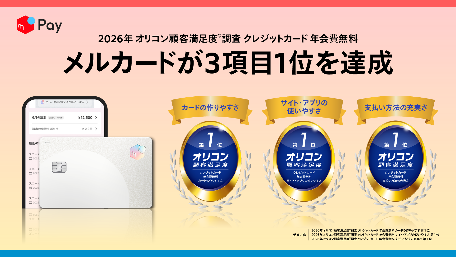 「メルカード」、「2026年 オリコン顧客満足度(R)調査 クレジットカード 年会費無料」で3項目1位を達成