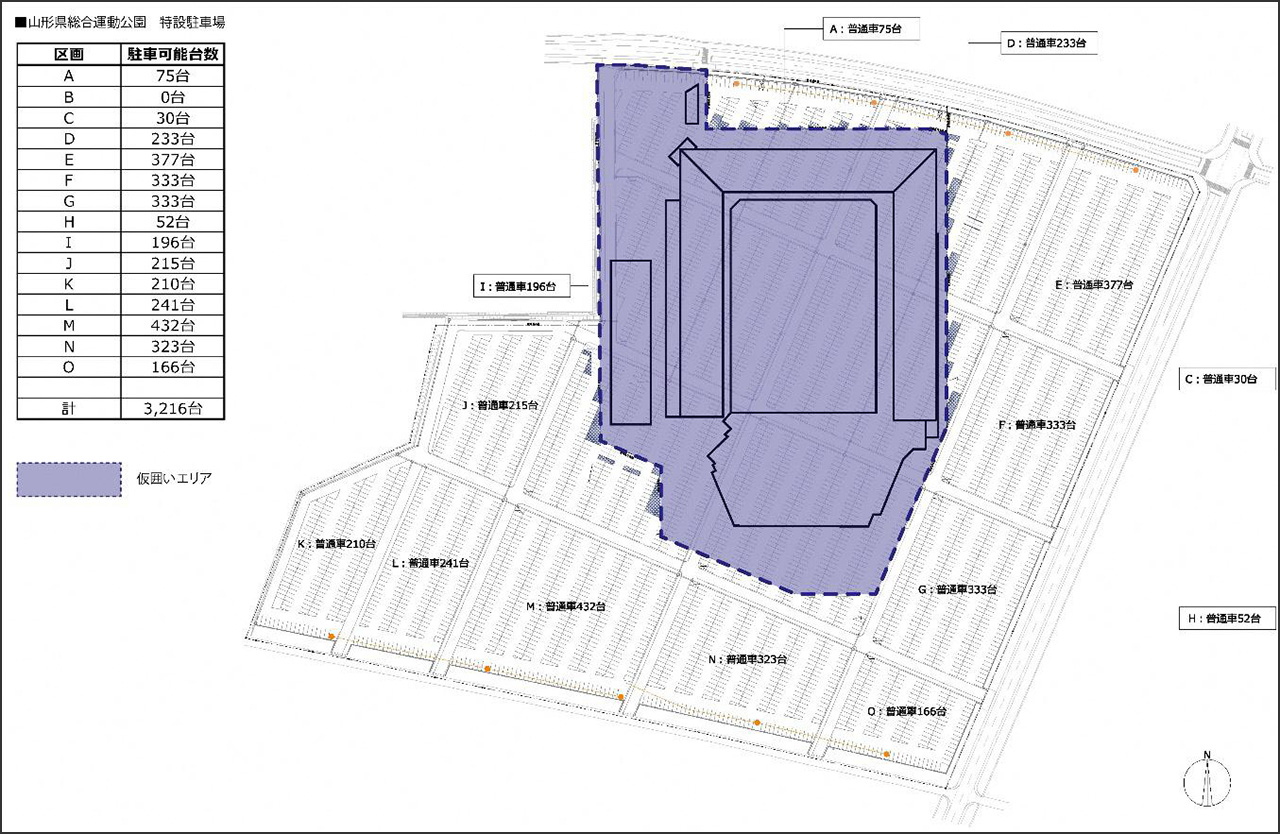 新スタジアム建設工事に伴う山形県総合運動公園特設駐車場一部利用制限のお知らせ
