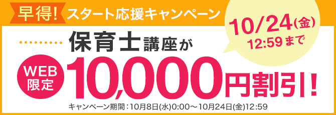 【ユーキャン】保育士講座がWEB限定10,000円割引!「早得!スタート応援キャンペーン」を開始!