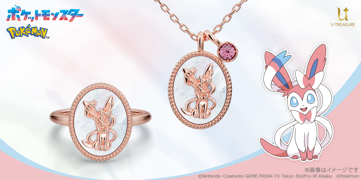 【ポケットモンスター】ニンフィアをデザインに施したネックレス&リング(指輪)。ピンクゴールドコーティングを施し、ニンフィアが持つ癒しの力を表現