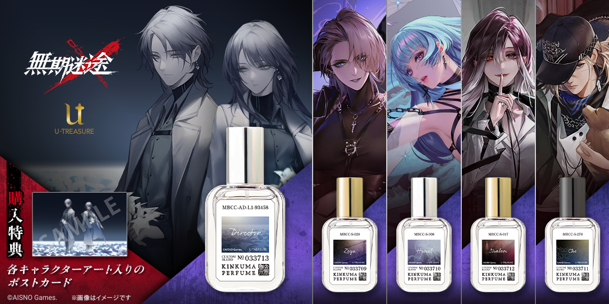 『無期迷途』オードパルファム(香水)。調香師が「局長」「ゾーヤ」「ハーメル」「シャローム」「澈」それぞれをイメージした香りを丁寧に表現。12月12日(金)まで予約受付