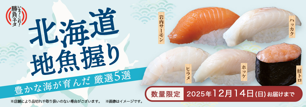 地魚握りシリーズ第3弾!希少なハッカクやホッケなど豊かな海が育んだ旬の味わいを使用した「北海道の地魚握り」2025年9月16日(火)~期間・数量限定販売
