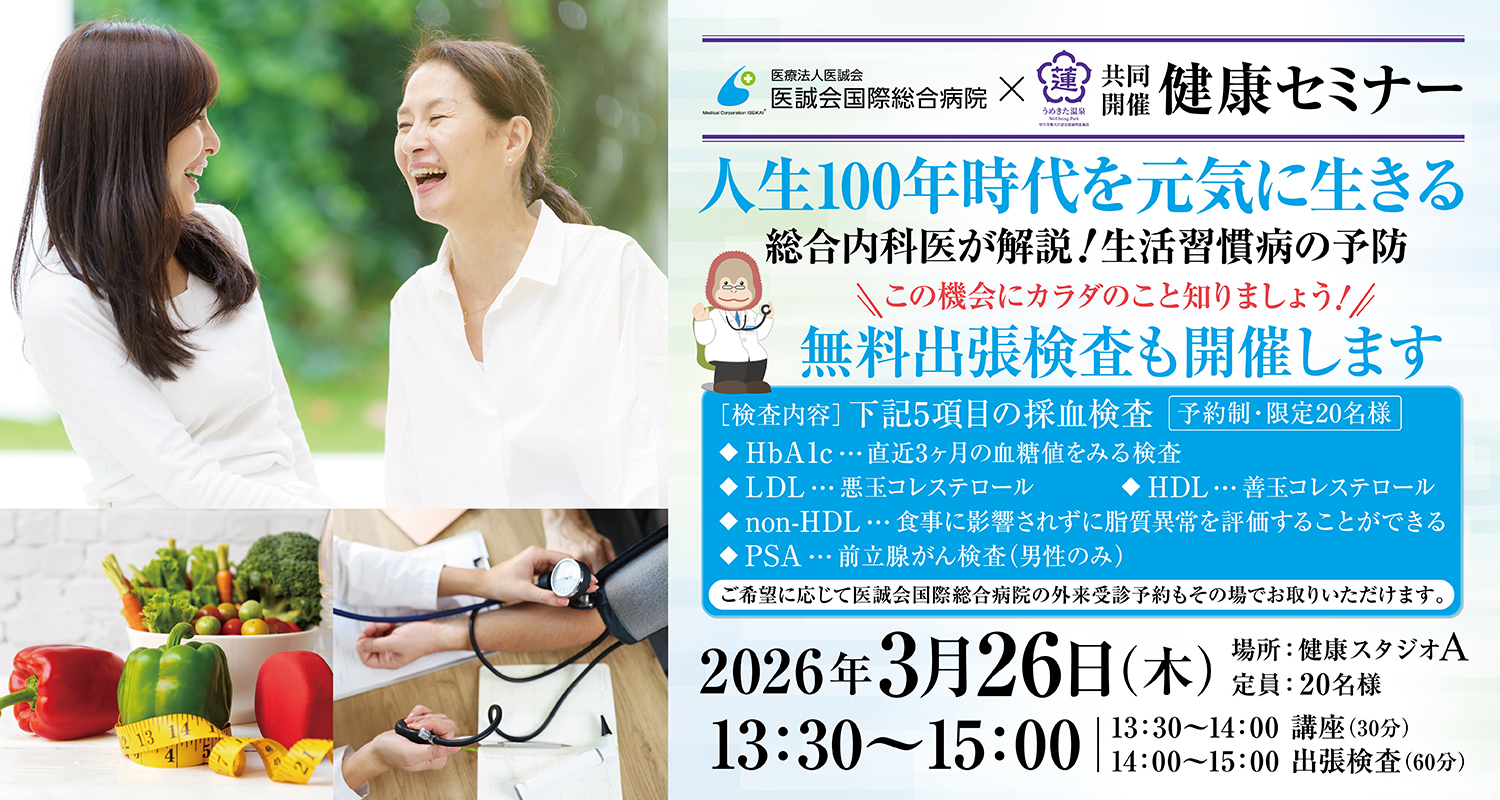 【うめきた温泉 蓮 Wellbeing Park】3/26 提携医療機関「医誠会国際総合病院」と共同で第11回健康セミナーを開催