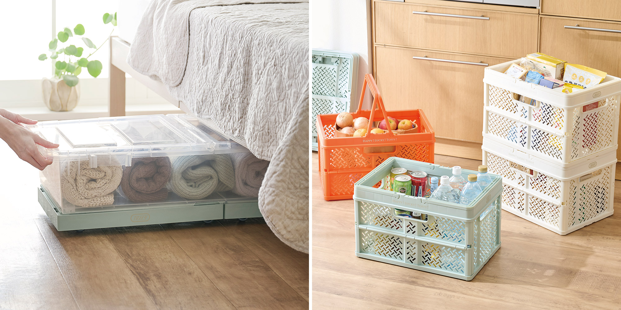 毎日の「運ぶ・しまう」をもっとラクに!「Toffy つながるフラットカート」「Toffy マジックボックスハード〈バスケットタイプ〉」発売