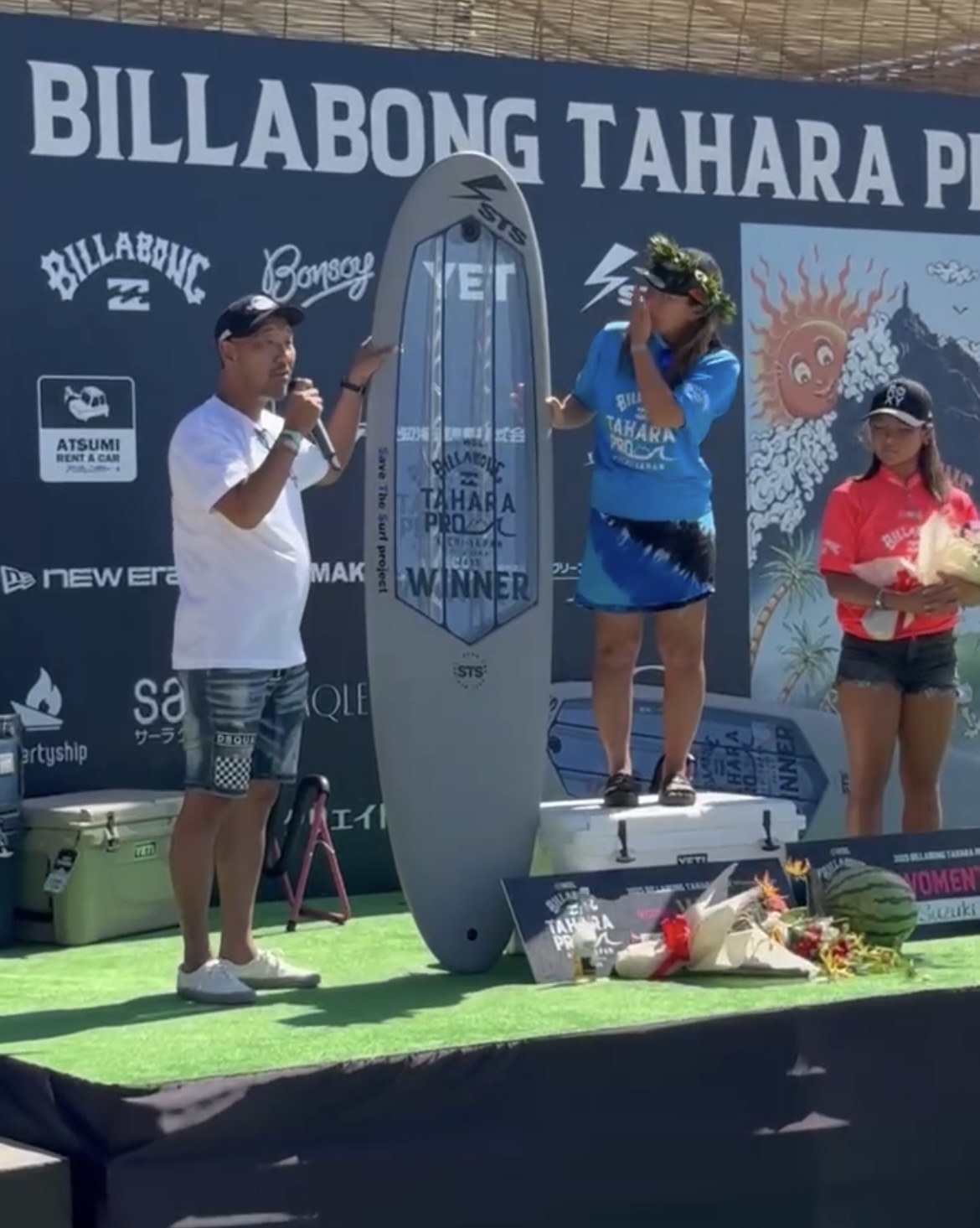 世界初の透明サーフボード、WSL公式大会で優勝者へ贈呈