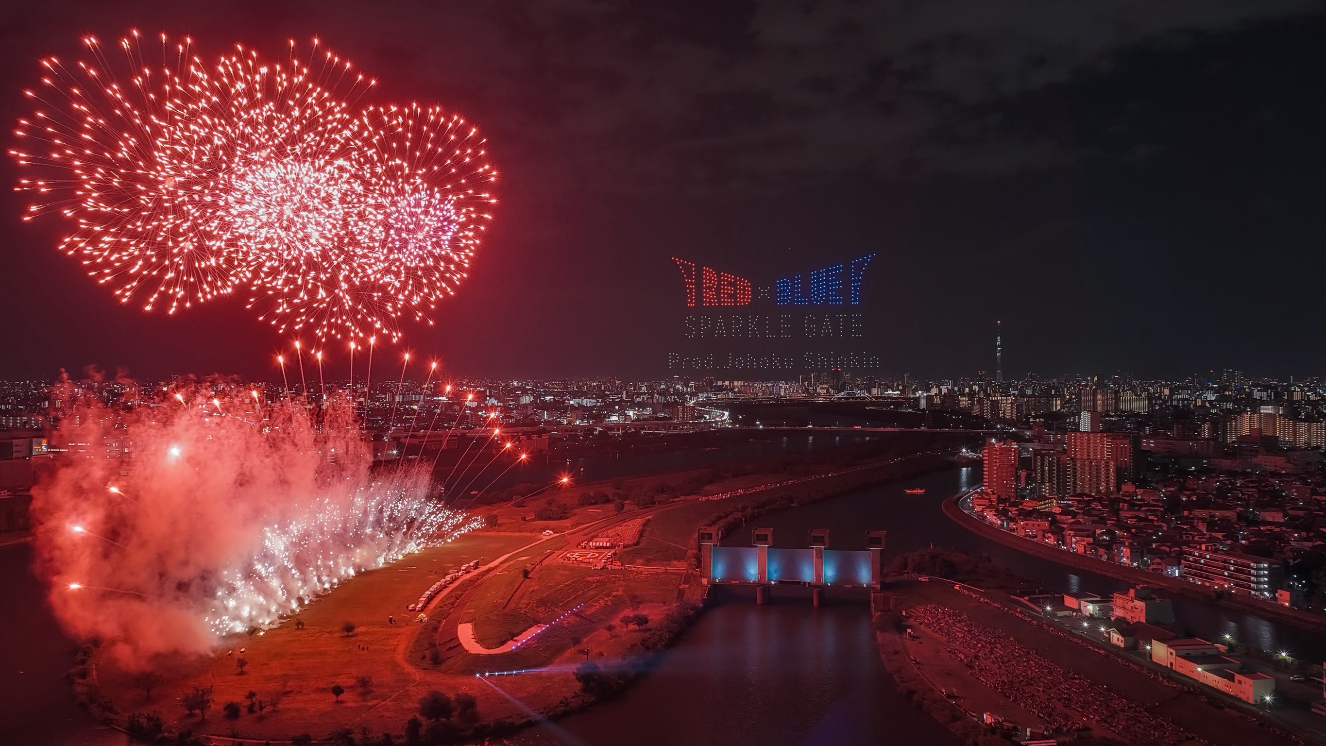 レッドクリフ、北区花火会オープニングで「生命の進歩」をテーマに500機のドローンショーを実施