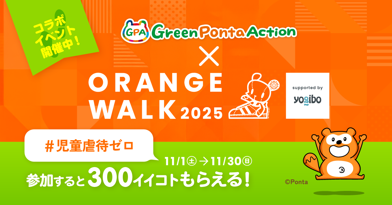 歩くことが児童虐待防止の啓発と寄付につながるイベント「ORANGE WALK 2025」にアプリ「Green Ponta Action」で参加しよう