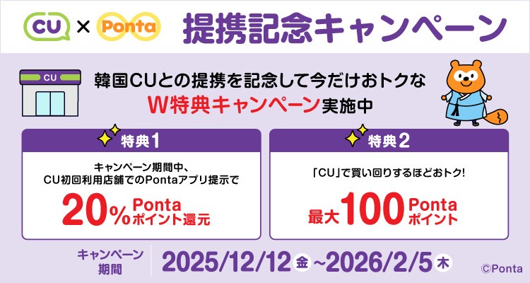 2025年12月12日、韓国の大手コンビニエンスストア「CU」でPontaポイントをためてつかえるサービス開始
