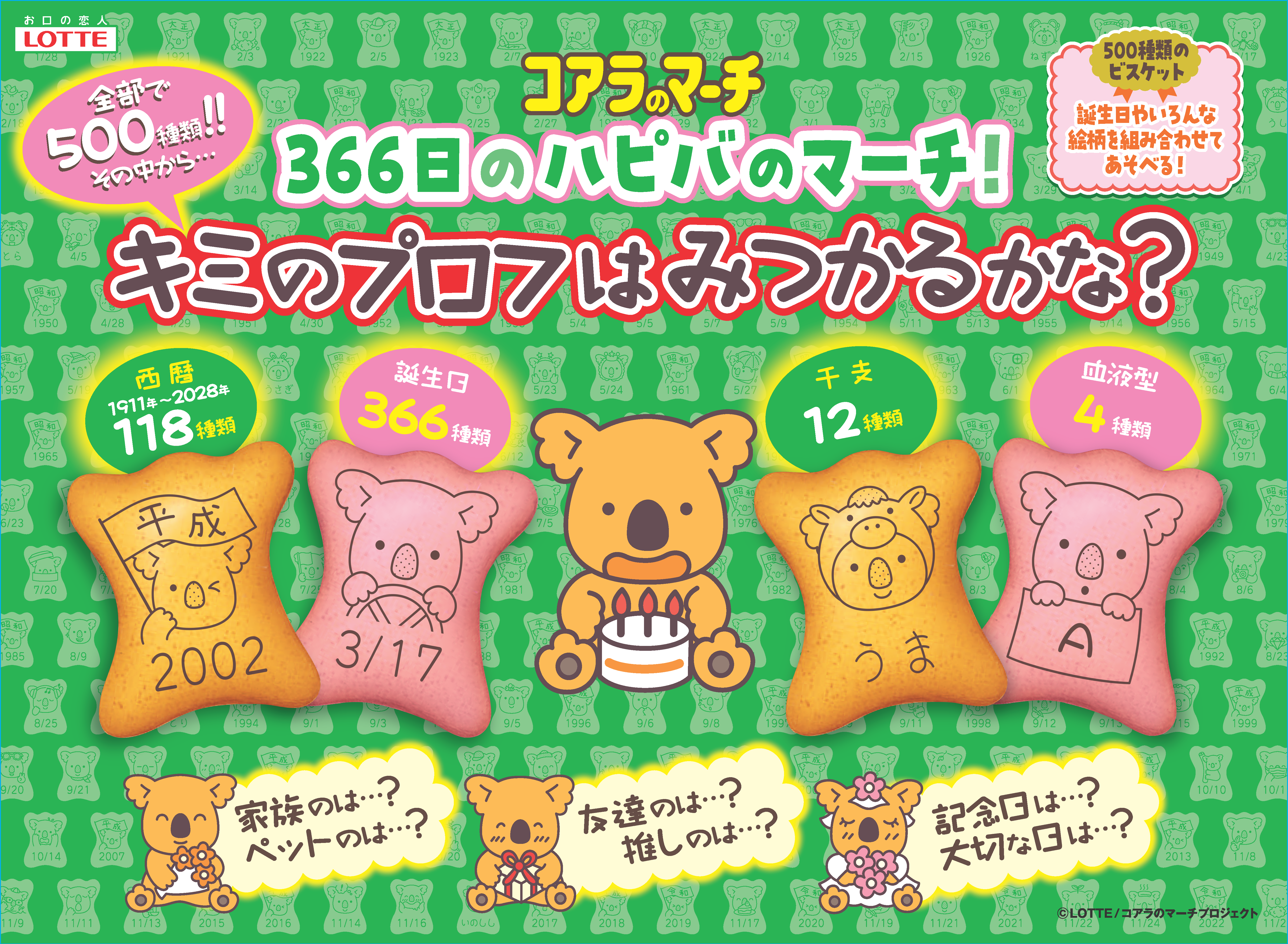 史上初!「プロフを探す」コアラのマーチ キミや推しのプロフはみつかるかな!?誕生日、西暦、干支、血液型・・・絵柄の組み合わせは約17万通り!