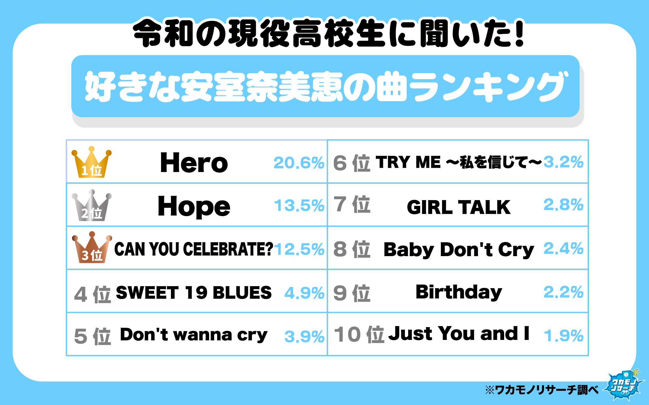 令和の現役高校生の半数以上 安室奈美恵さんの曲を聞いていることが判明! ランキング1位にはあの名曲が!?