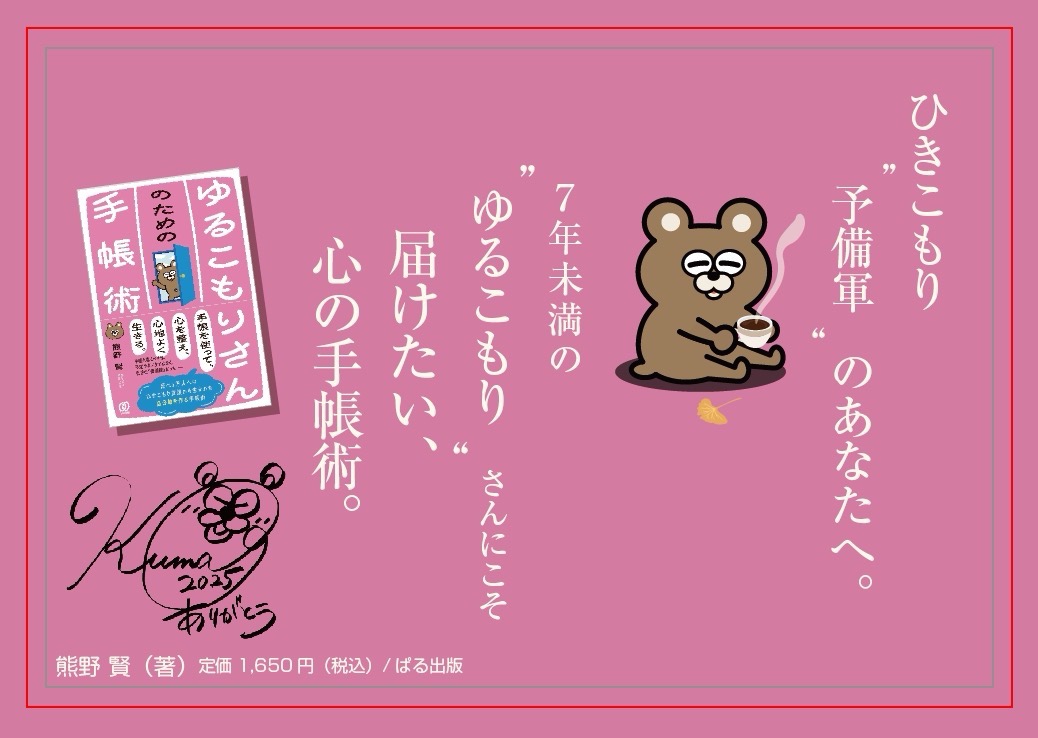 延べ1万人の支援経験から生まれた新しいセルフケア手帳術が重版決定!出版記念講演会を全国5拠点で無料開催 ―『ゆるこもりさんのための手帳術』著者・熊野賢