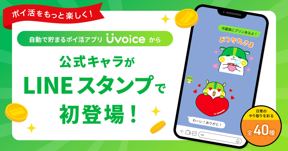 【ポイ活をもっと楽しく!】自動で貯まる無料ポイ活アプリ「Uvoice」から、公式キャラがLINEスタンプで初登場!