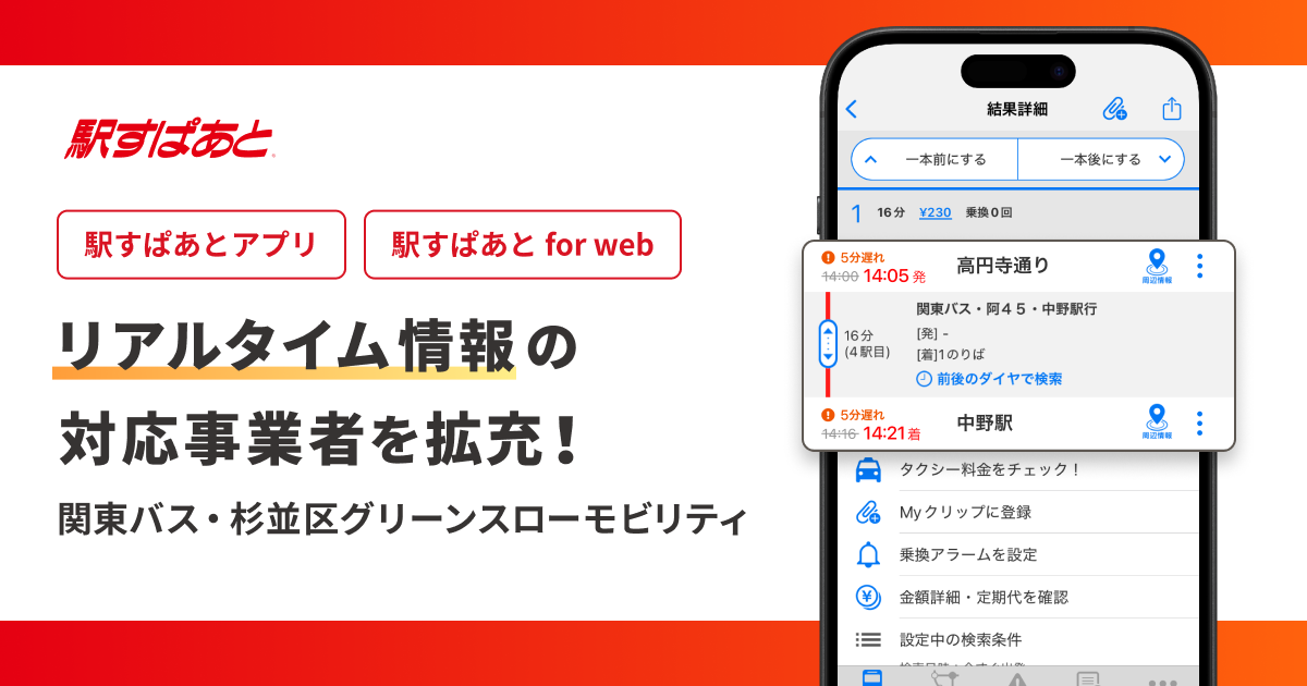 「駅すぱあとアプリ」が関東バスと杉並区グリーンスローモビリティのリアルタイムな遅延情報の提供を開始