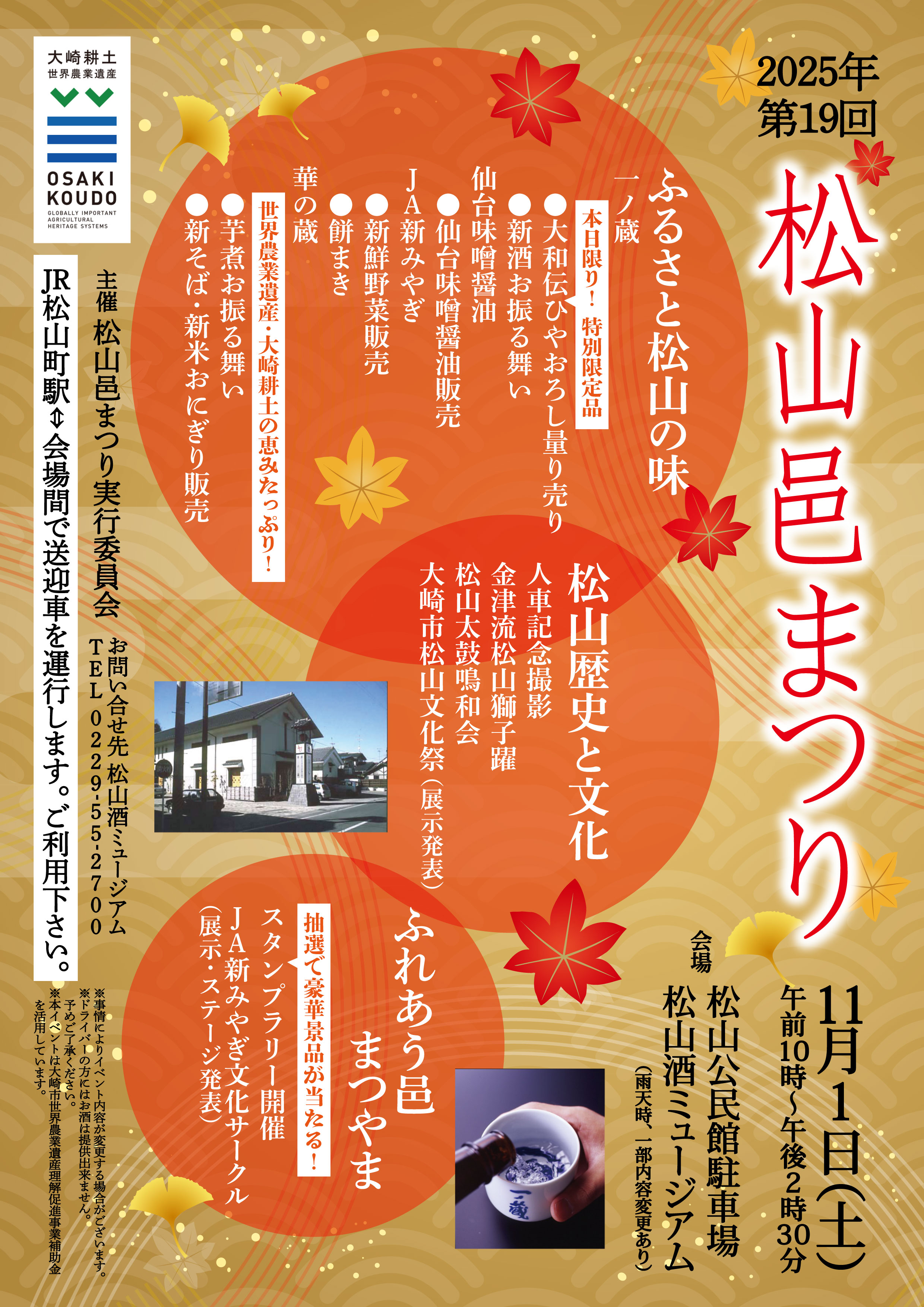 当日限りの蔵元直送 特別限定量り売り 「一ノ蔵 特別純米原酒 大和伝 ひやおろし」も新登場!『松山邑まつり』2025年11月1日(土)開催!