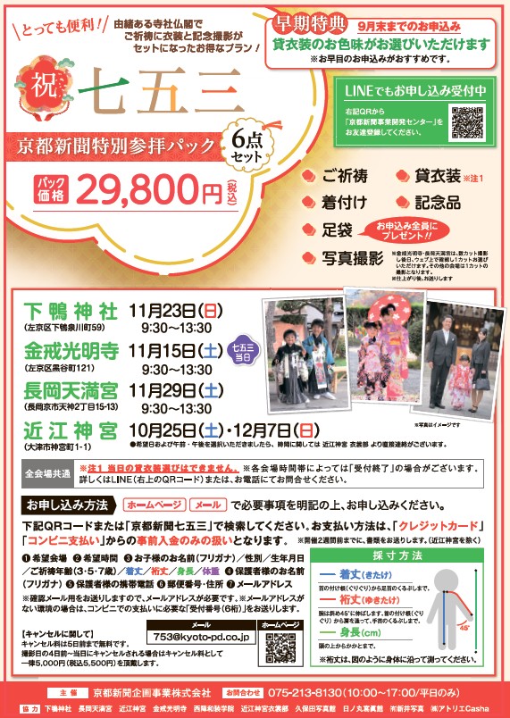 お得なパックで京都・滋賀の社寺で七五三参り お子さまの無事なる成長を神様にご報告、今年も開催します!