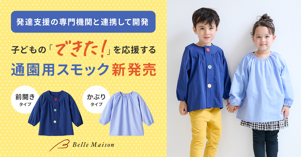 発達支援の専門機関と連携して開発子どもの「できた!」を応援するベルメゾンオリジナル「タイプが選べる通園用スモック」を10月17日(金)より販売開始