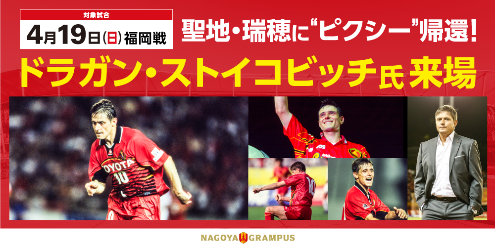 【名古屋グランパス】「聖地・瑞穂」に”ピクシー”帰還!4/19(日)パロマ瑞穂スタジアムこけら落とし試合ドラガン・ストイコビッチ氏来場決定のお知らせ