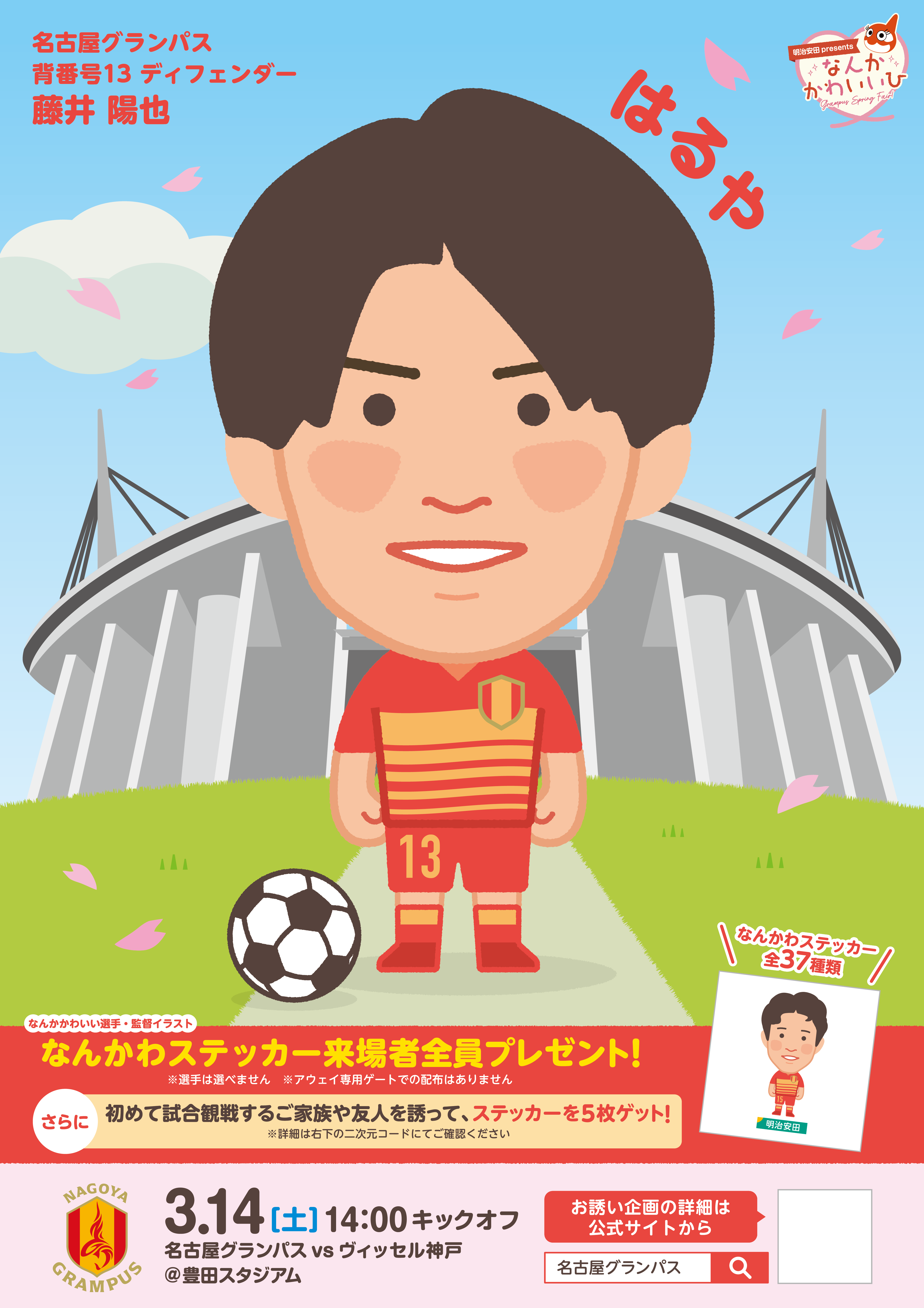 【名古屋グランパス】あいち造形デザイン専門学校×名古屋グランパス学生連携企画!3/14(土)ヴィッセル神戸戦にて全選手イラスト化イベント開催決定!