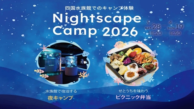 申込受付中!四国水族館でのキャンプ体験! 夜の水族館『NightscapeCamp(ナイトスケープキャンプ)2026春』を開催(PR TIMES ママ)