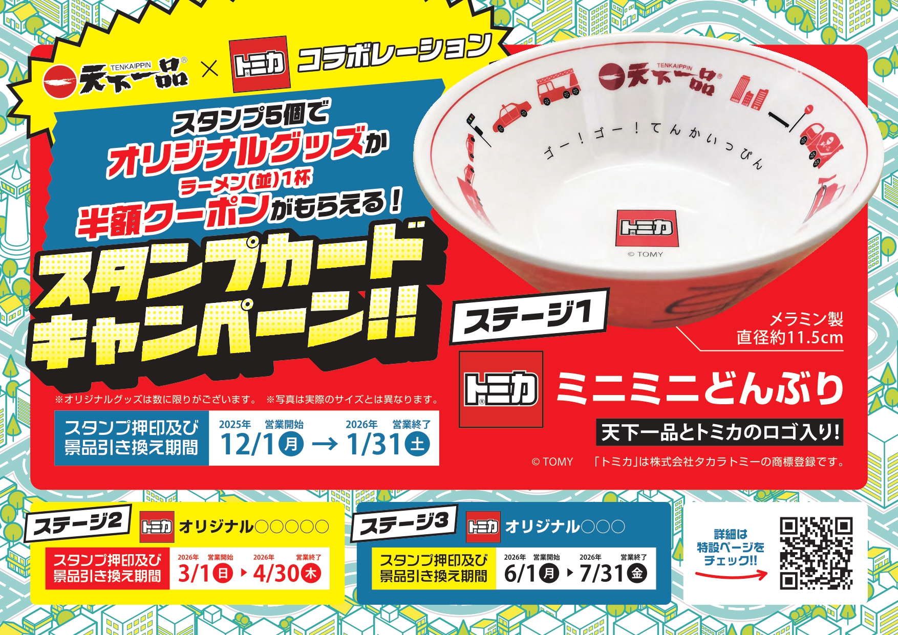 初の「トミカ」とのコラボ!!今年も「アプリでスタンプカードキャンペーン」開催!