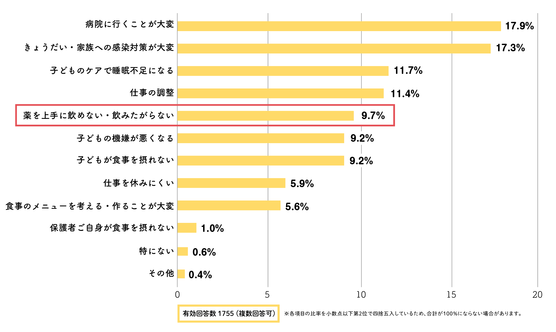 お子さんの服薬に、約72%の保護者が苦労した経験アリ。逃げ回ったり吐き戻したりと苦戦するご家庭も【子どもの服薬に関する調査】