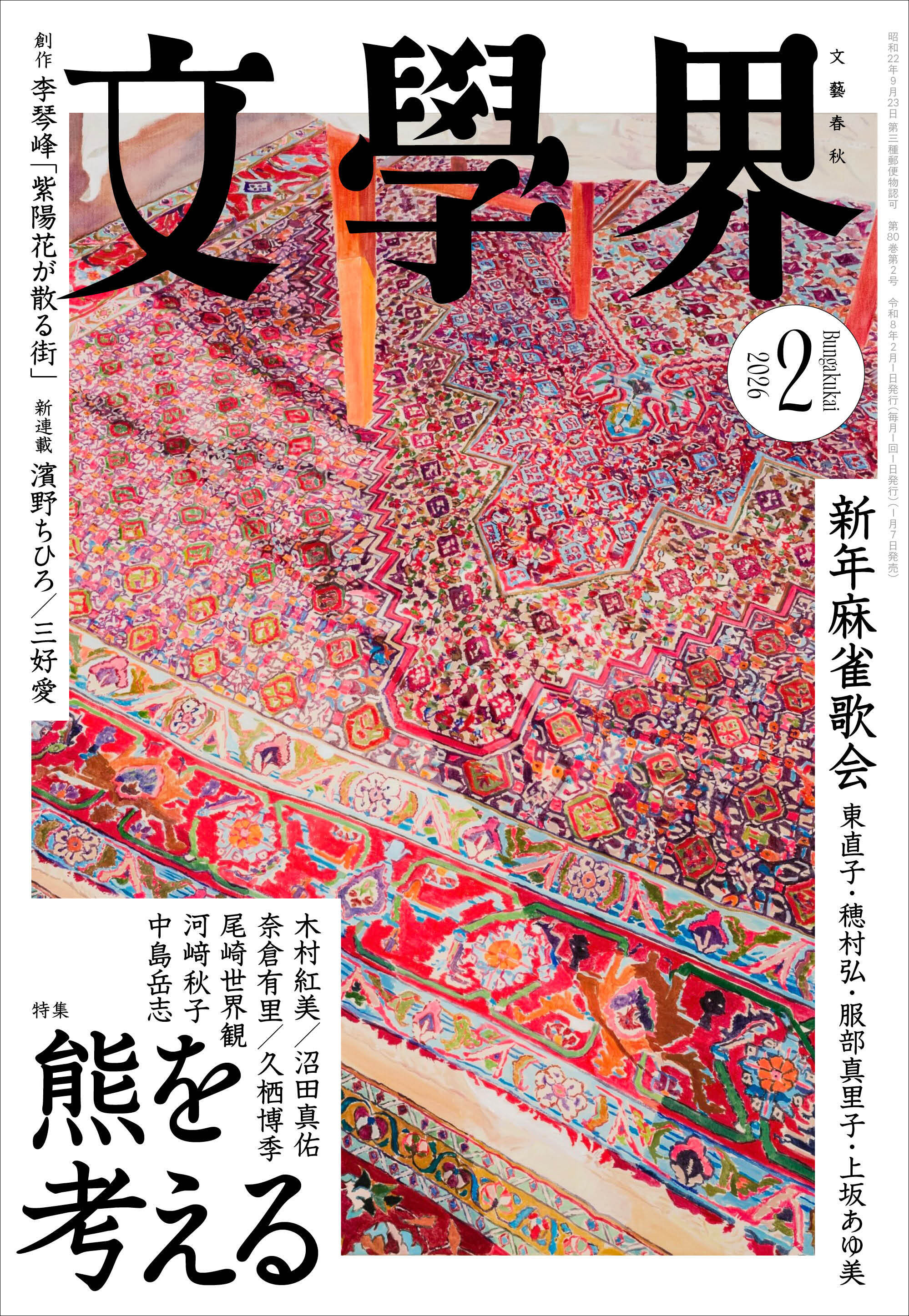『文學界』2026年2月号は1月7日発売! 濱野ちひろ、三好愛による新連載がスタート。特集「熊を考える」では、総勢7名による熊エッセイをお届けします