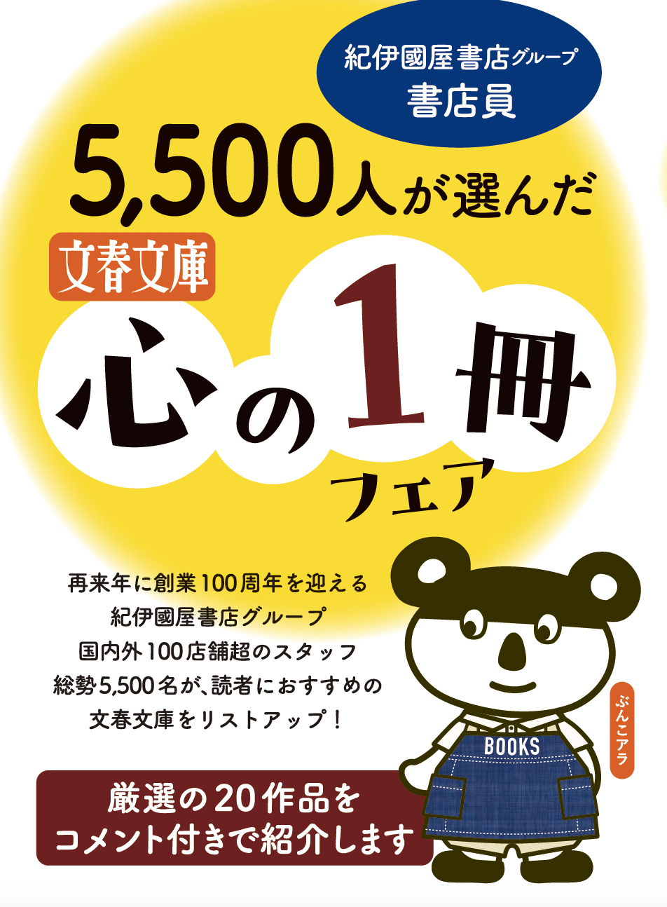 文藝春秋と紀伊國屋書店グループが、11月から「文春文庫『心の1冊』フェア」を開催! 書店員5500人が選んだ20作品を展開!