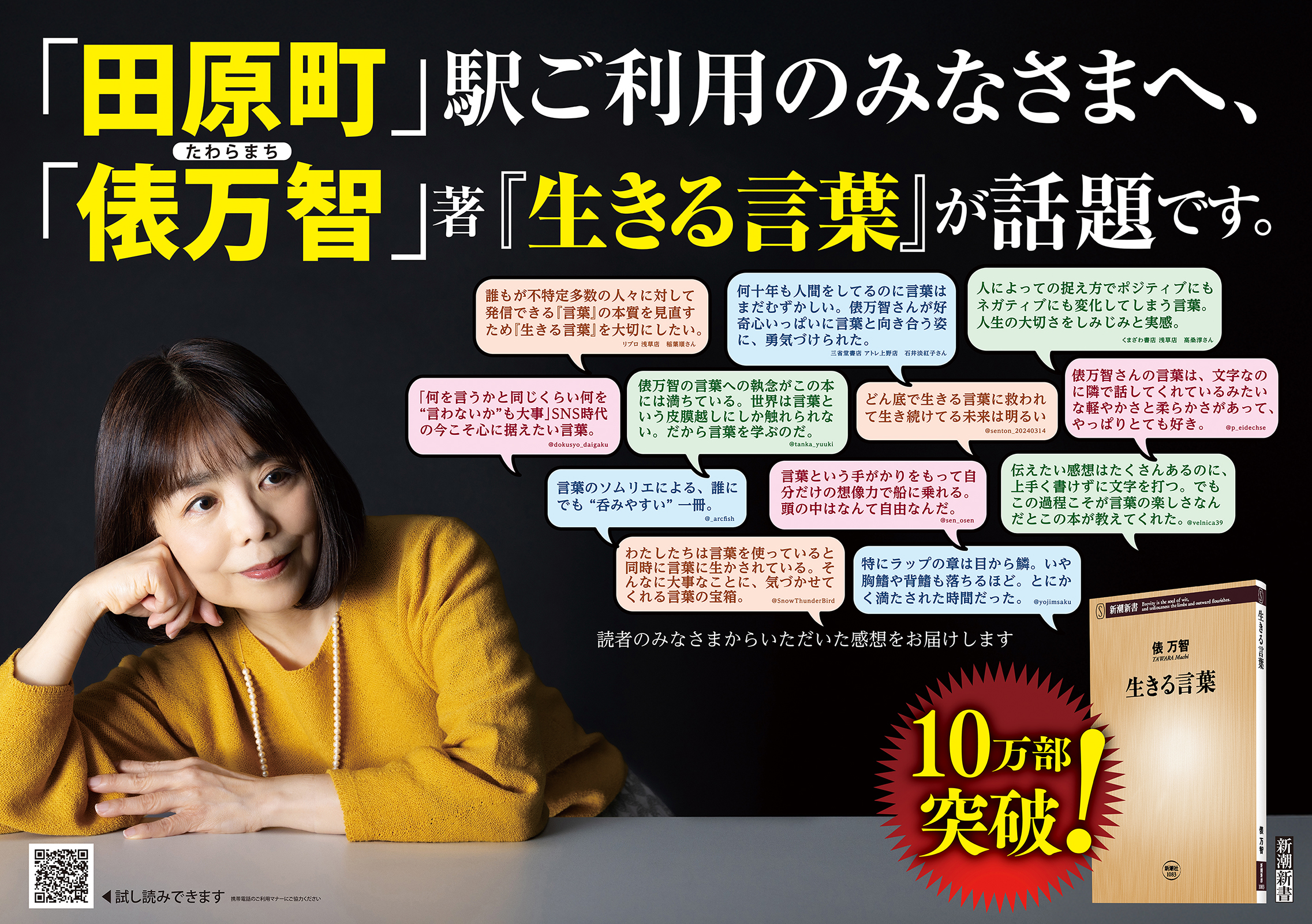 東京・福井の「田原町(たわらまち)駅」に、俵万智さん新刊『生きる言葉』の広告を掲出しました!