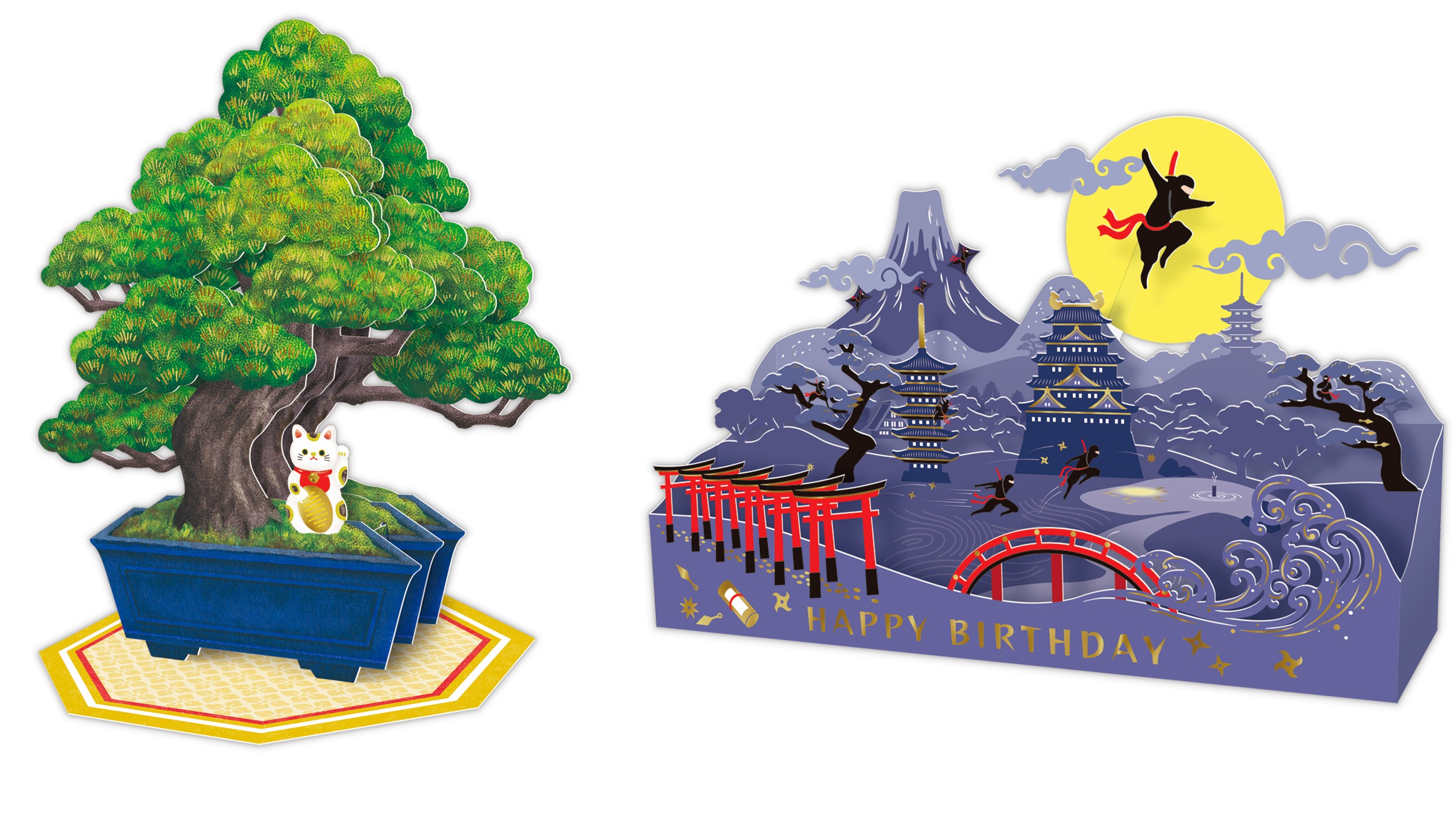 “小さな日本”を立体カードでお土産に! 忍者や富士山、盆栽など日本の魅力をぎゅっと詰め込んだ、インバウンド向けカードシリーズ「ハローニッポン」新登場