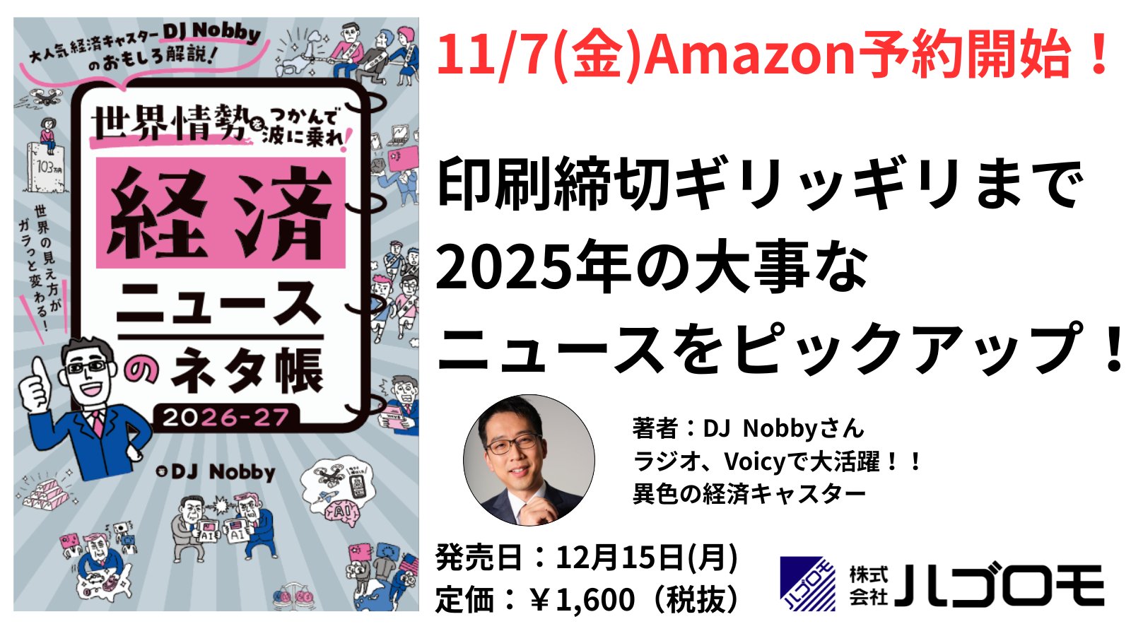 フォロワー10万人超“経済の翻訳家”DJ Nobby、新刊『世界情勢をつかんで波に乗れ! 経済ニュースのネタ帳 2026-27』を12月15日(月)に発売