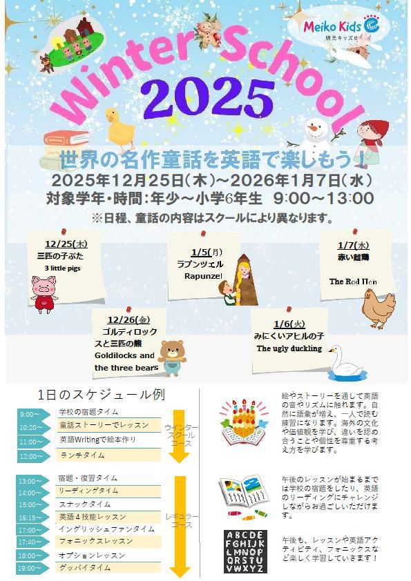 オールイングリッシュの学童保育・アフタースクール Meiko Kids e (明光キッズe) 冬休みは英語で冒険!「WINTER SCHOOL 2025」申込スタート!(PR TIMES ママ)