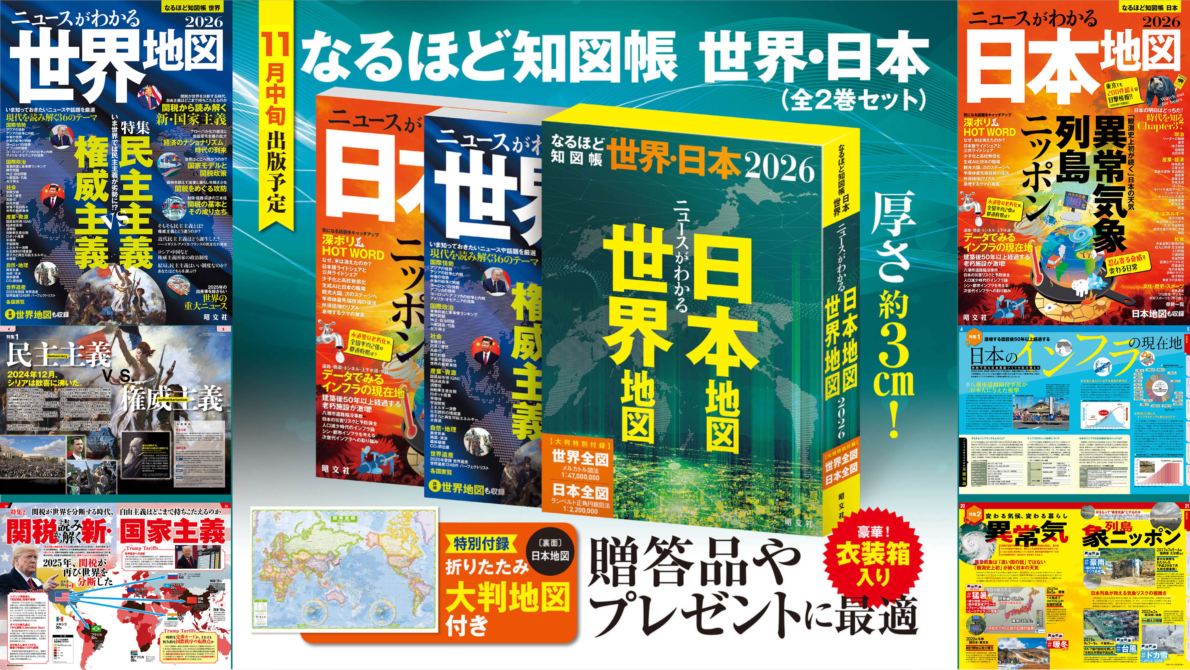 創刊22年目!最新の地図がついた信頼の情報地図帳の2026年版 なるほど知図帳『世界』『日本』および2巻セットを11/20発売