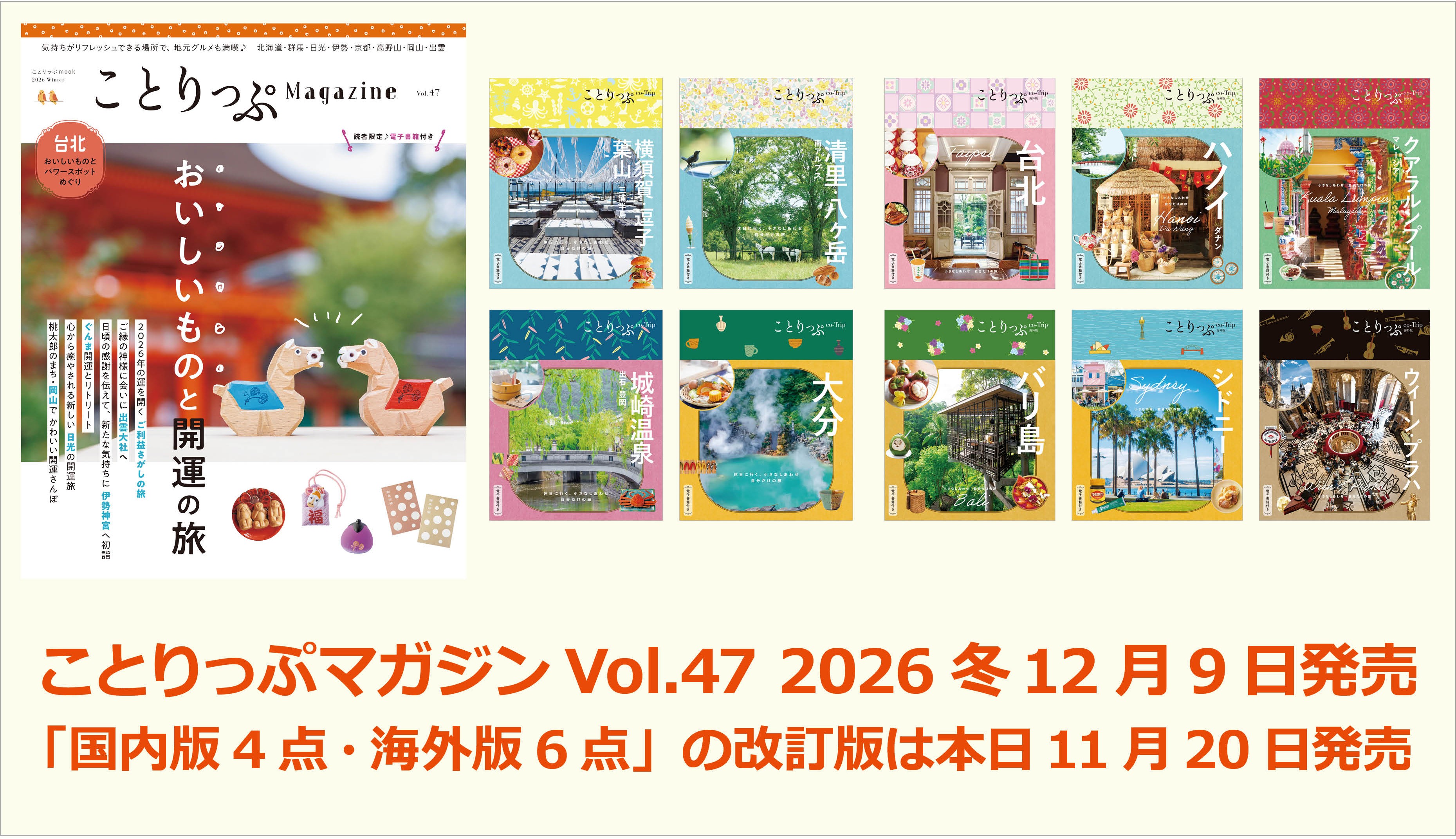 冬号のテーマは「おいしいものと開運の旅」さらに改訂版も10点登場『ことりっぷマガジン冬号』&『改訂版国内4点・海外6点』発売