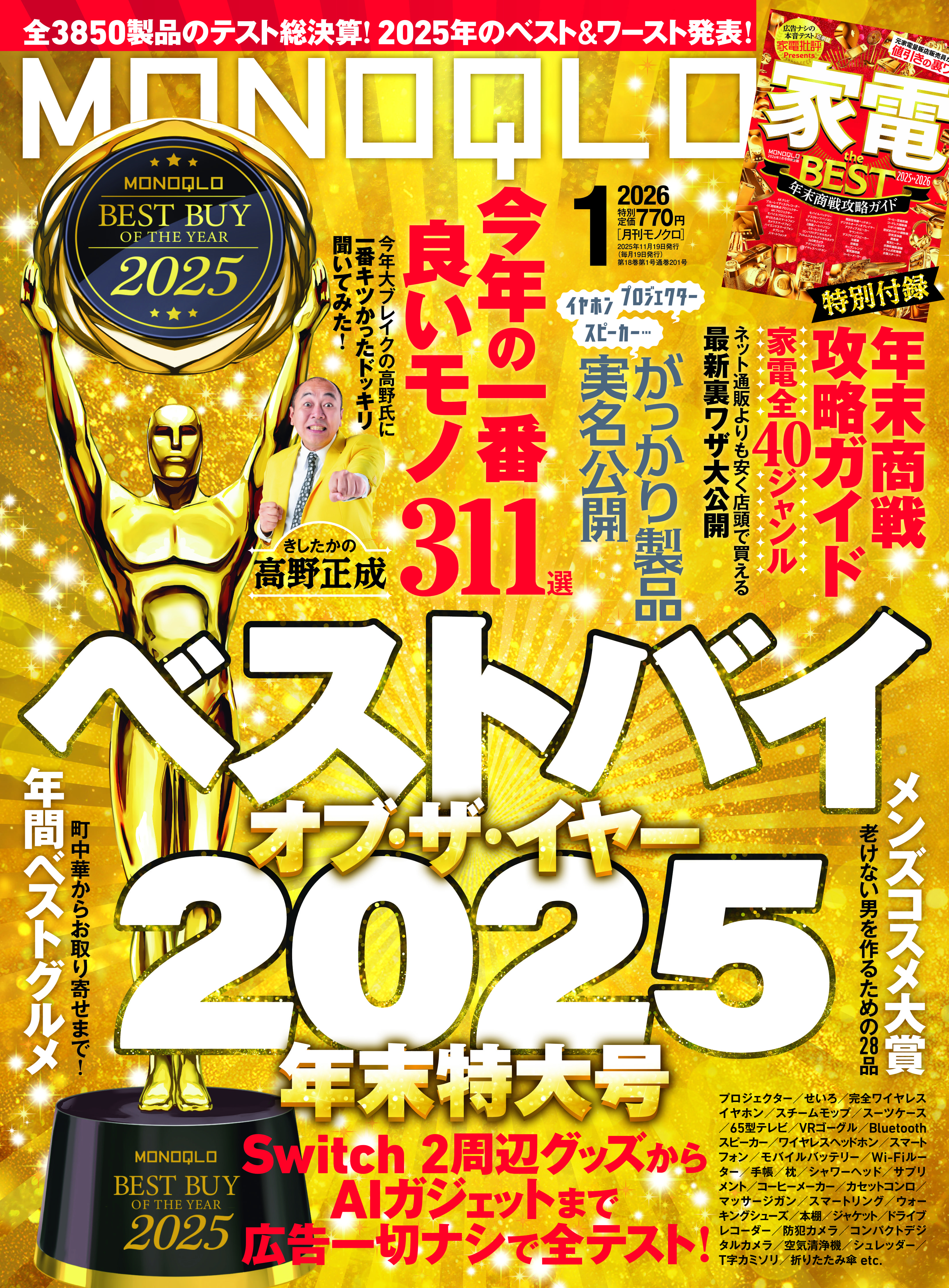 〈年間MVP〉ベスト・バイ・オブ・ザ・イヤー2025発表!ガジェットから生活家電まで買い物納め前に要チェック!!【MONOQLO1月号】